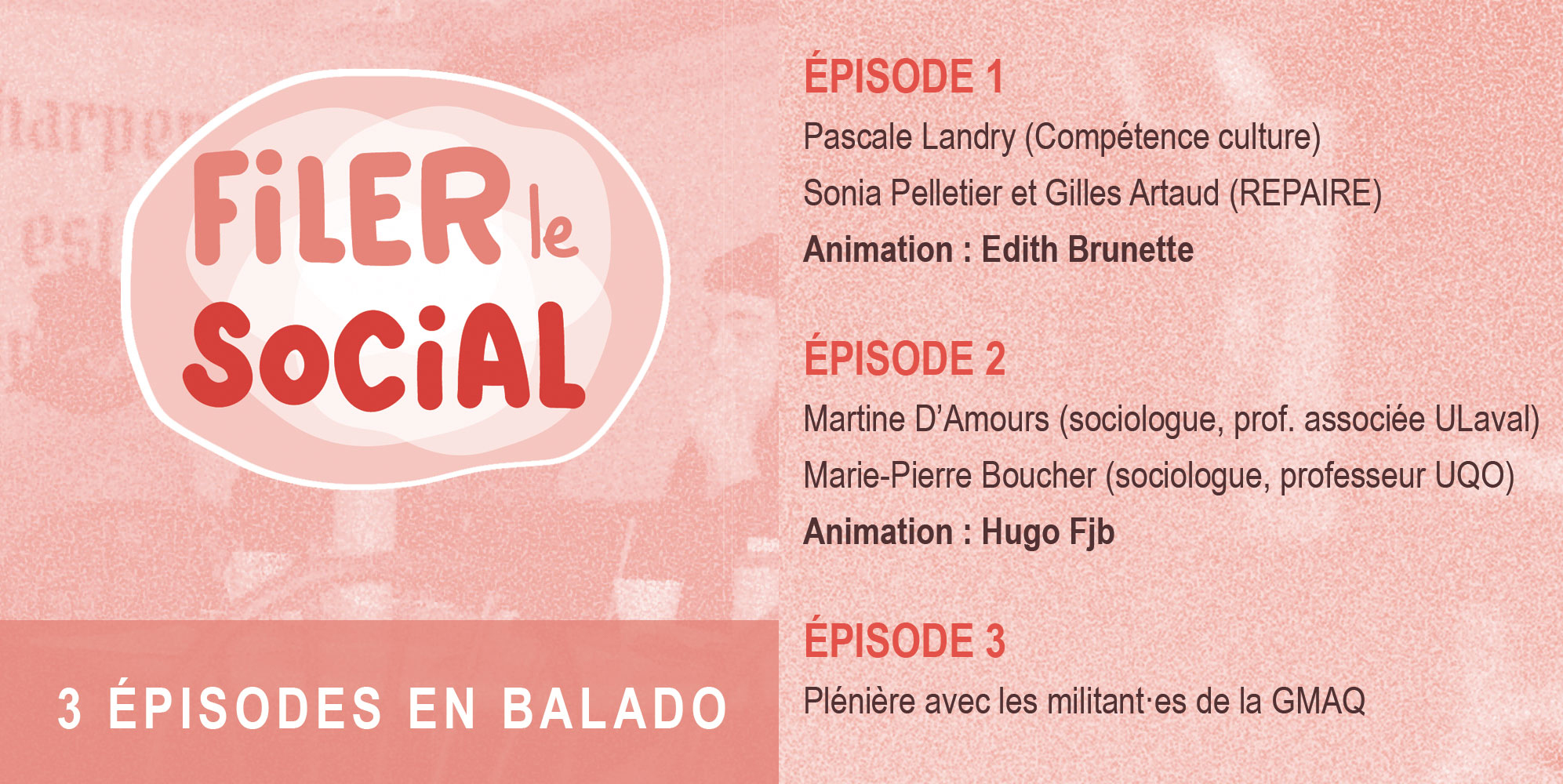 Le 20 septembre 2025, la Grande mobilisation pour les arts au Québec (GMAQ) a réuni des artistes, travailleur·euses des arts et chercheur·euses à travers la province pour réfléchir ensemble au filet social des artistes. Ce balado revient sur cette journée d’échanges et de solidarité, où s’est affirmée une pensée critique et collective pour redéfinir nos revendications et revendiquer notre rôle d’expert·es de nos propres réalités.
