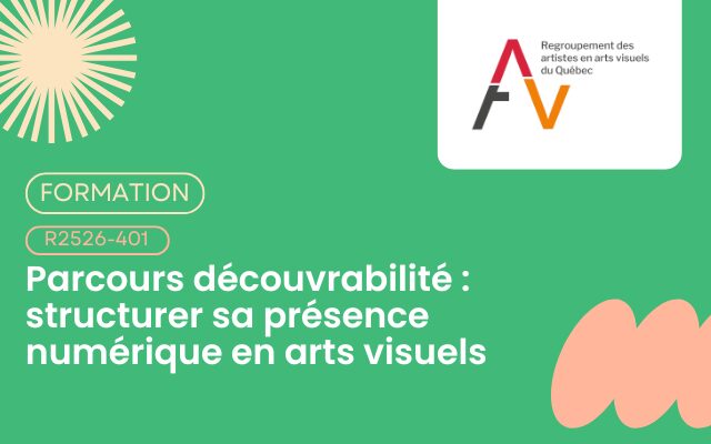 Cette formation accompagne les artistes en arts visuels ainsi que les travailleuses et travailleurs culturels du secteur dans la structuration de leur présence numérique afin de rendre leurs œuvres plus repérables et accessibles en ligne. Répartie sur quatre modules interactifs présentés sur une période d’un mois, elle propose une approche concrète et progressive, ancrée dans les réalités du milieu des arts visuels.